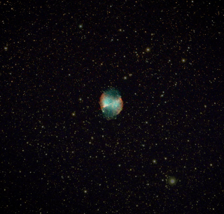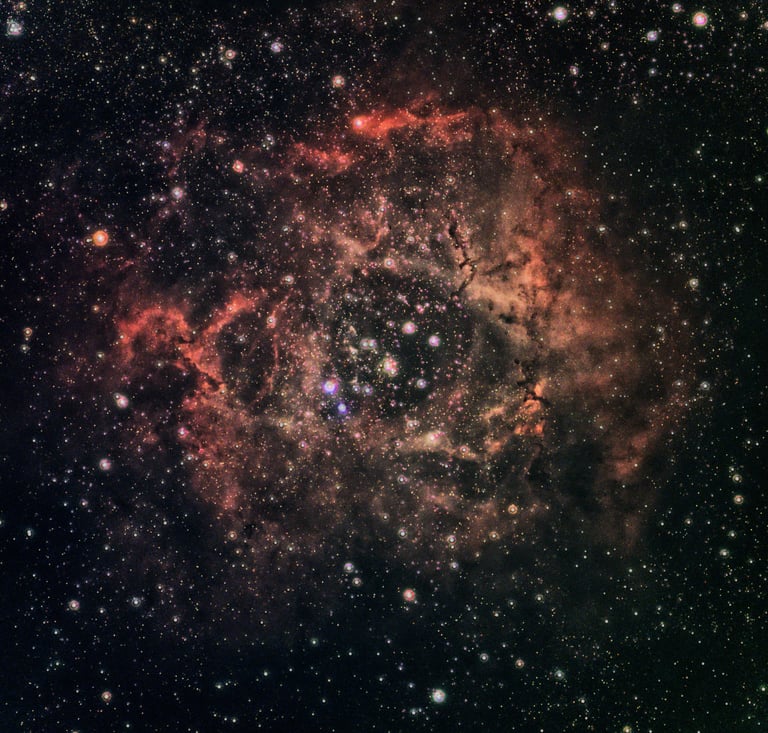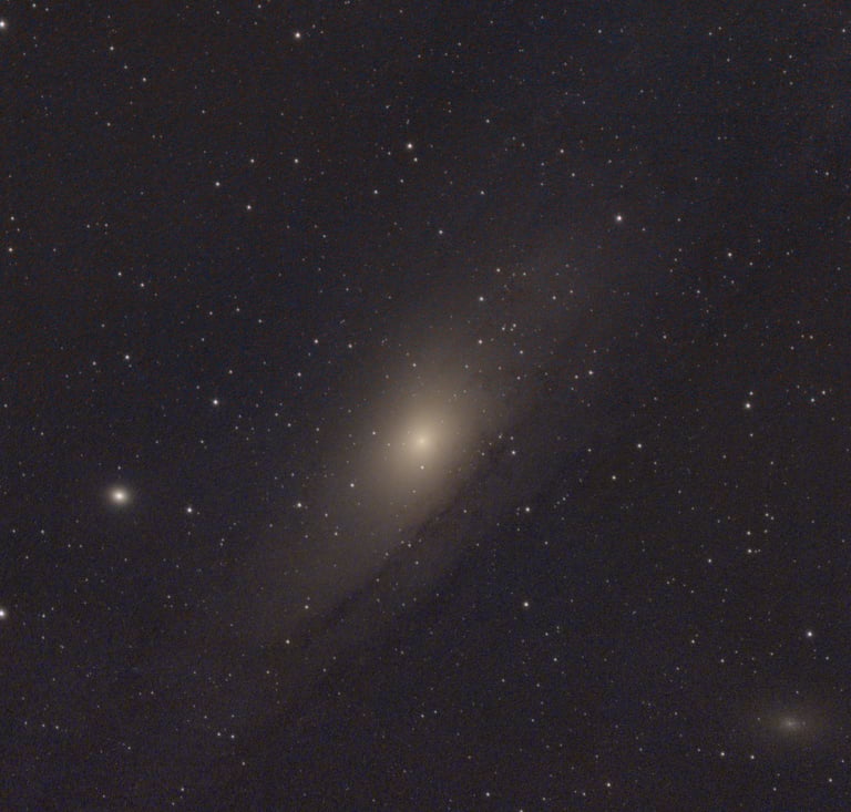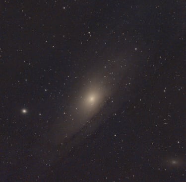 I have started taking some deep space photos using a Vespera Pro smart telescope and long exposure frames stacked over a very long observation time. Most of these are just experimental attempts to find a target that isn't obscured by buildings or trees and stays that way for about an hour. The Andromeda galaxy observation was intended to be 4 hours, but only made it through two. The raw stacks are combined into a single image by the telescope, but I have also done the stacking with Siril. Sometimes that works better, sometimes not. None of these have the benefit of dark or flat calibration frames. That is something the telescope can do, but takes additional setup time that I didn't have for these first few. No doubt, I will get better at this, weather permitting.