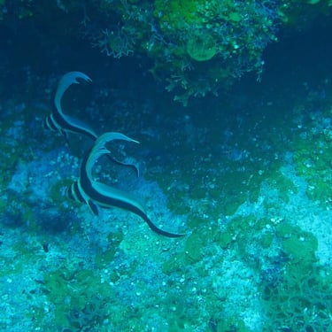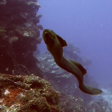 Spineyhead Blenny, Bearded Toad fish, Blue Channel Divers, Green Moray Eel